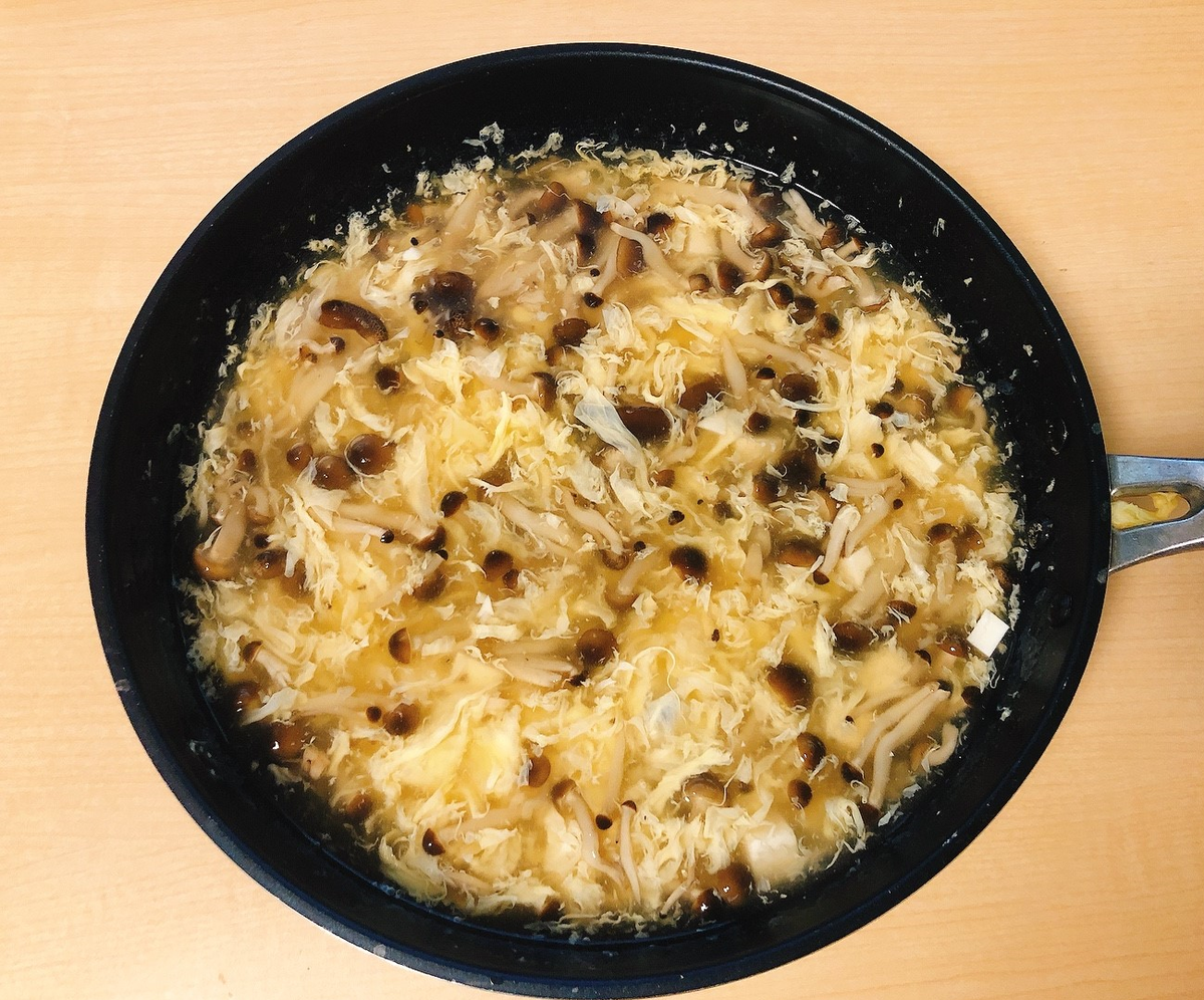 中華卵スープ ぶなしめじ入り。おつとめ品のぶなしめじと絹豆腐を使ったコスパに優れ栄養豊富な一品。