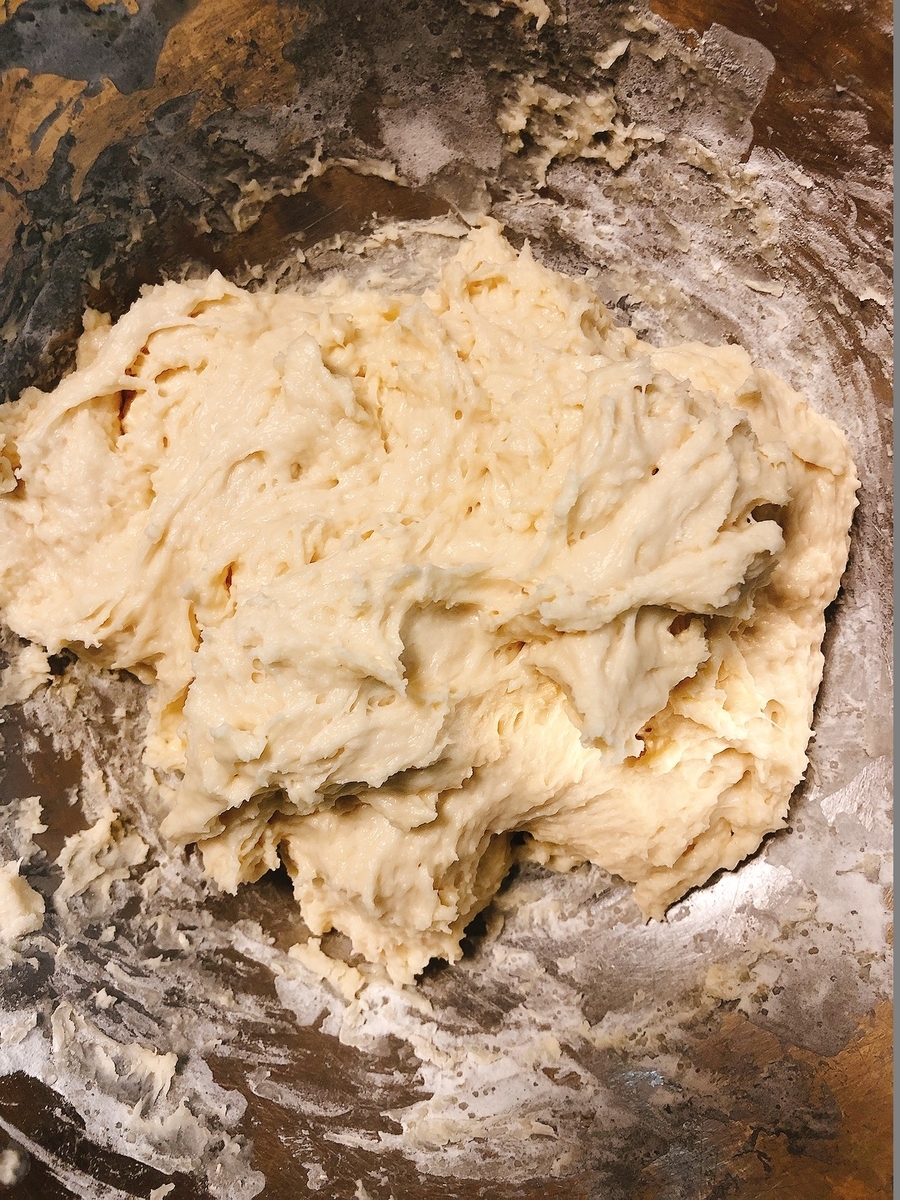 初めて作るのでよく知らないのだが、レシピに書かれている熟成時間が短いように思われ、この時間でドライイーストがちゃんと働くのだろうか…。