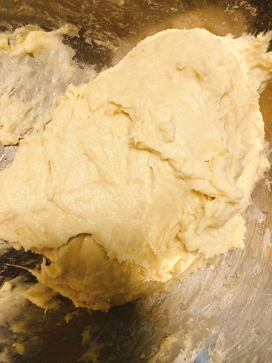 油を加えてまたこねる。以前よりも手から離れやすくなったが、どれくらいこねればいいのだろうか。わからないままある程度こね続ける。